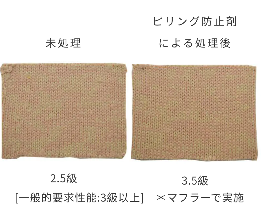 ?ピリング防止剤による加工などを行い、ピリング性能を向上させる(風合い等が変化[生地が硬くなる等]するので注意