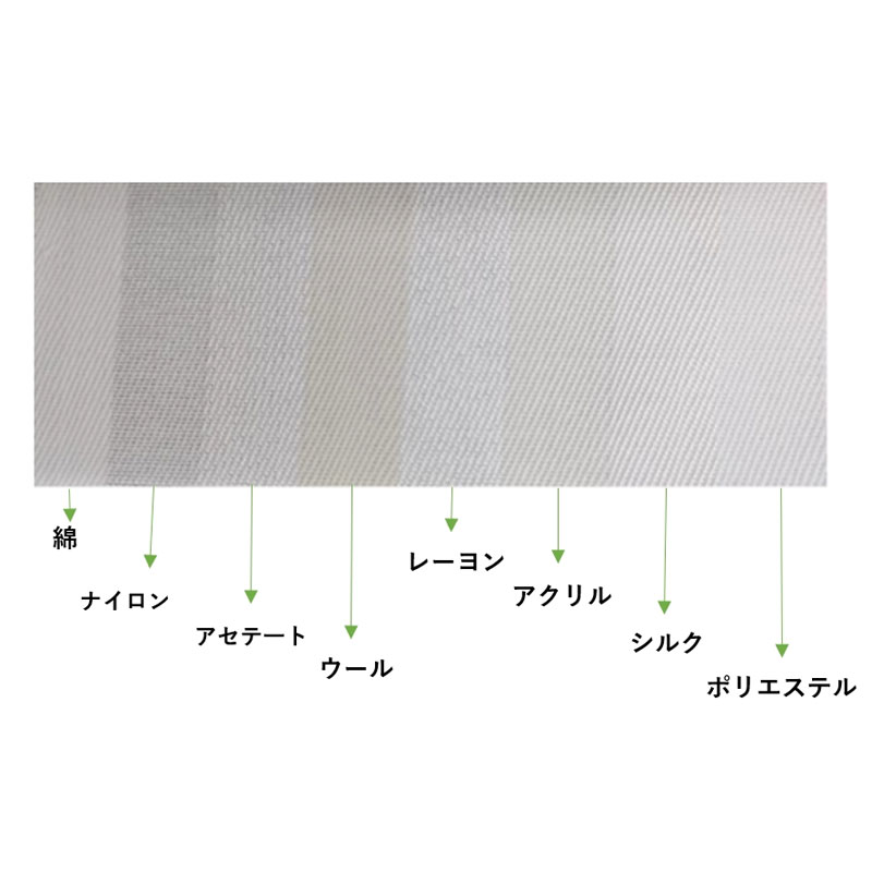 家庭洗濯の際に使う水道水に含まれる塩素、又は水泳プールの消毒に用いられる塩素によって、生地の色が変わる恐れがないかどうかを調べるために行う試験です。綿の染色に用いられる反応染料や直接染料は塩素によって変色しやすい物もあるので、注意が必要です。