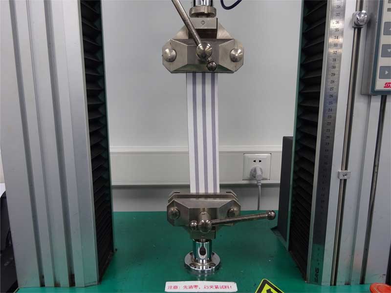 B法(抓樣法):經(jīng)、緯各取100mm×150mm試驗(yàn)片3枚,夾持隔距75mm,將試樣在中心位置夾持在試驗(yàn)機(jī)上,以一定速度進(jìn)行拉伸,測定在斷裂時的力值。