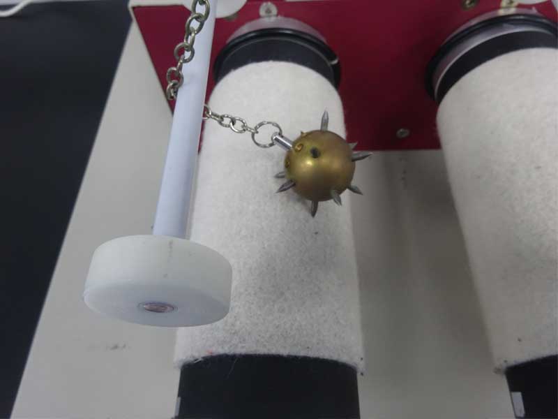 勾絲試驗(yàn)有從A法-D法的試驗(yàn)方法。常用的方法A法(ICI型釘錘試驗(yàn)機(jī)法)為200mm×330mm的試驗(yàn)片經(jīng)緯各2枚。縫成圓筒狀,安裝在轉(zhuǎn)筒上。將釘錘放在試驗(yàn)片上、運(yùn)轉(zhuǎn)100回。將試驗(yàn)片從轉(zhuǎn)筒上取出,和勾絲標(biāo)準(zhǔn)樣照進(jìn)行對比,根據(jù)勾絲發(fā)生現(xiàn)象進(jìn)行判級。
