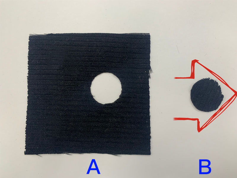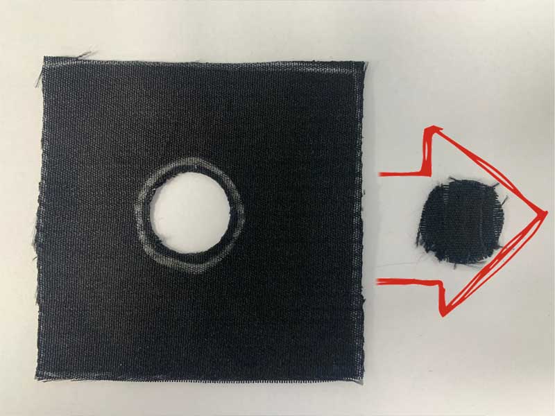 將試驗(yàn)片A的磨損部分切成與試驗(yàn)片B大小相同的圓形,將切下來的部分分成絨和地線,稱出絨毛的的殘留重量(MA)。